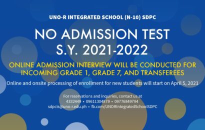 The UNO-R Integrated School (N-10) is now open to hold Admission Interviews for School Year 2021-22